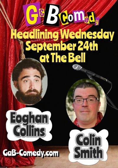 We've two absolutely cracking headliners for you at The Bell on September 24th. Closing the first half we have the musical mayhem of Eoghan Collins and closing the show we've the messy maelstrom of utter hilarity that is Colin D.H. Smith.