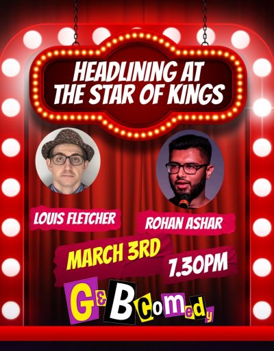 Headlining at The Star of Kings on March 3rd we've the brilliant and bonkers Louis Fletcher and the fabulously funny Rohan Ashar.
